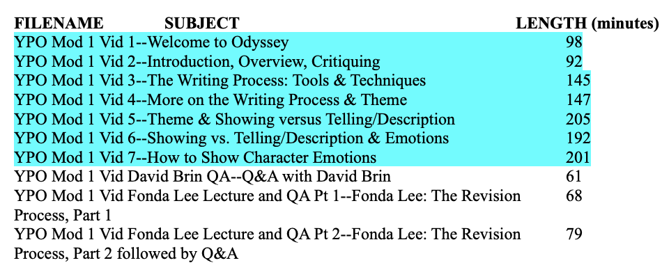 An introduction to the workshop. How having your work critiqued and critiquing the work of others can help you improve. How to critique, how to deal with having your work critiqued. The challenges you’ll face during Your Personal Odyssey. The need for deep practice. The eight elements of fiction.