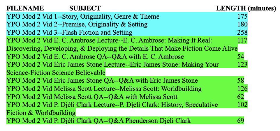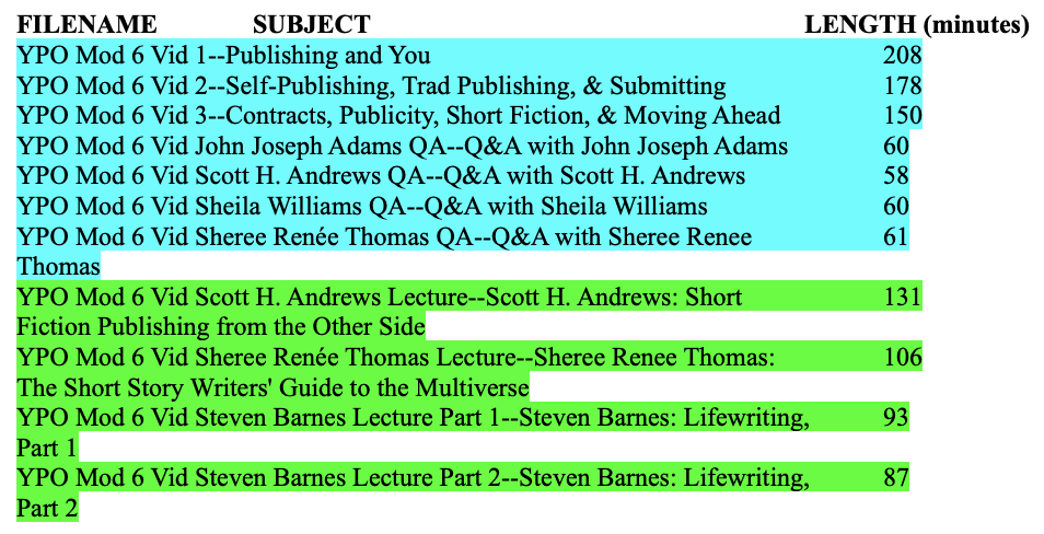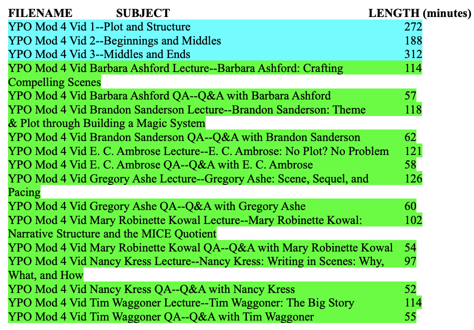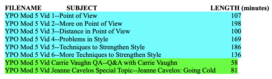 Note: Required videos in each module are highlighted in blue.
