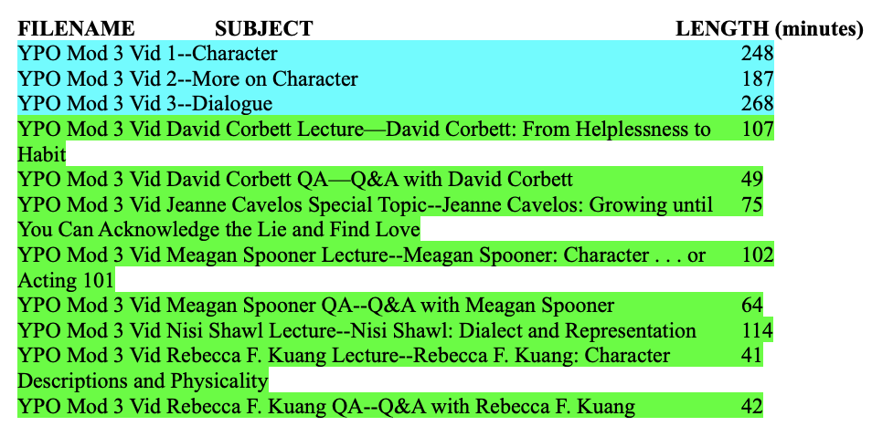 Note: Below, terms like “3rd module” indicate the third module that you choose to study, whichever one that is. The term “Module 3,” in contrast, is the title of the specific module focused on Character and Dialogue.