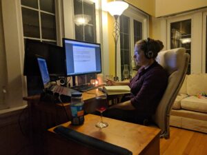Lectures and discussions are scheduled for particular times, and students are expected to attend all of them at the scheduled times. Students receive access to these sessions through Zoom. At class time, plug in your USB headset and click the link to go to the Zoom meeting. You will see and hear the instructor live, giving the lecture, and your computer screen will become the instructor's blackboard, where various examples and notes will be displayed.